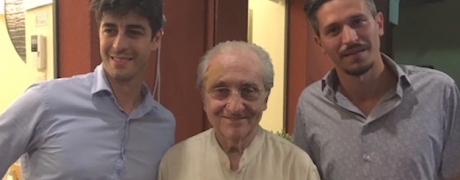 AGOSTO 2016 - Il maestro Gualtiero Marchesi ha voluto essere presente alla serata inaugurale del ristorante “Il Portico” di Appiano Gentile per un “in bocca al lupo” allo chef Paolo Lopriore, tra i suoi allievi prediletti. Un’occasione anche per un piacevole incontro con Andrea Sala di That’s Wine e Andrea Pesce (Vini e Più).